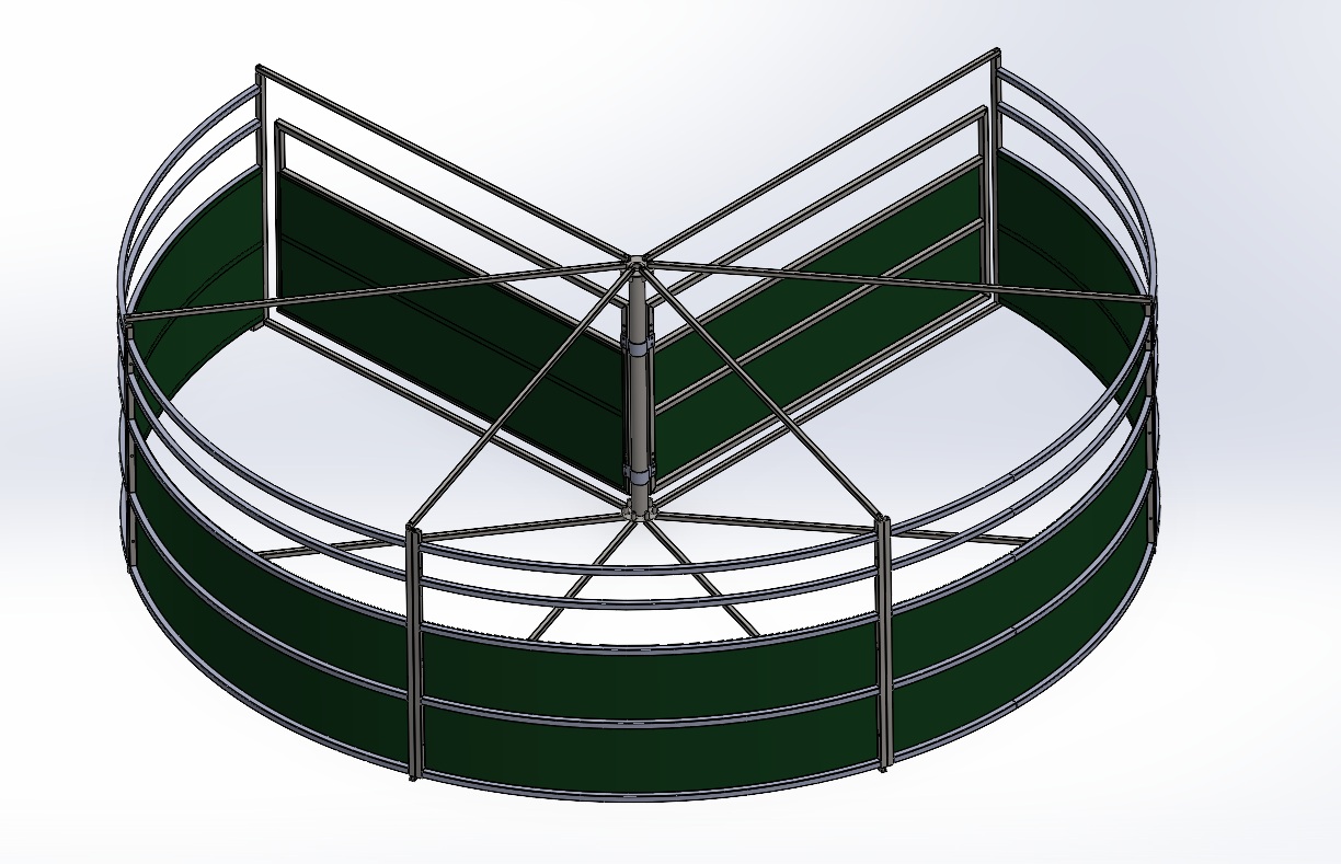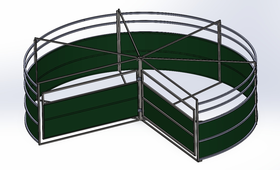 Koral (koło zagęszczające) to kluczowy element systemu do bezpiecznego przepędu, zagęszczania i selekcji bydła do odpowiednich grup hodowlanych. Konstrukcja została zaprojektowana tak, aby umożliwić sprawną pracę nawet przy większych stadach, a jednocześnie zapewnić wysoki poziom bezpieczeństwa zarówno dla obsługi, jak i dla zwierząt.