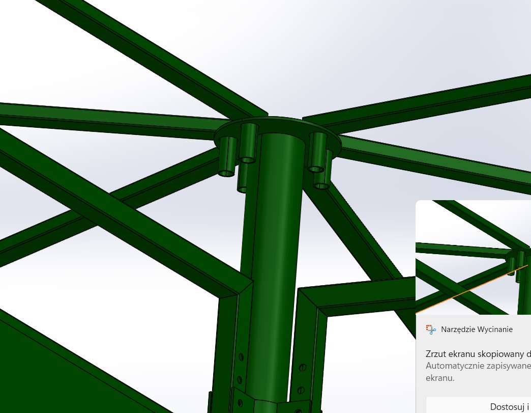 Całość malowana podkładem antykorozyjnym oraz farbą nawierzchniową w kolorze standardowym RAL 6002 półmat.